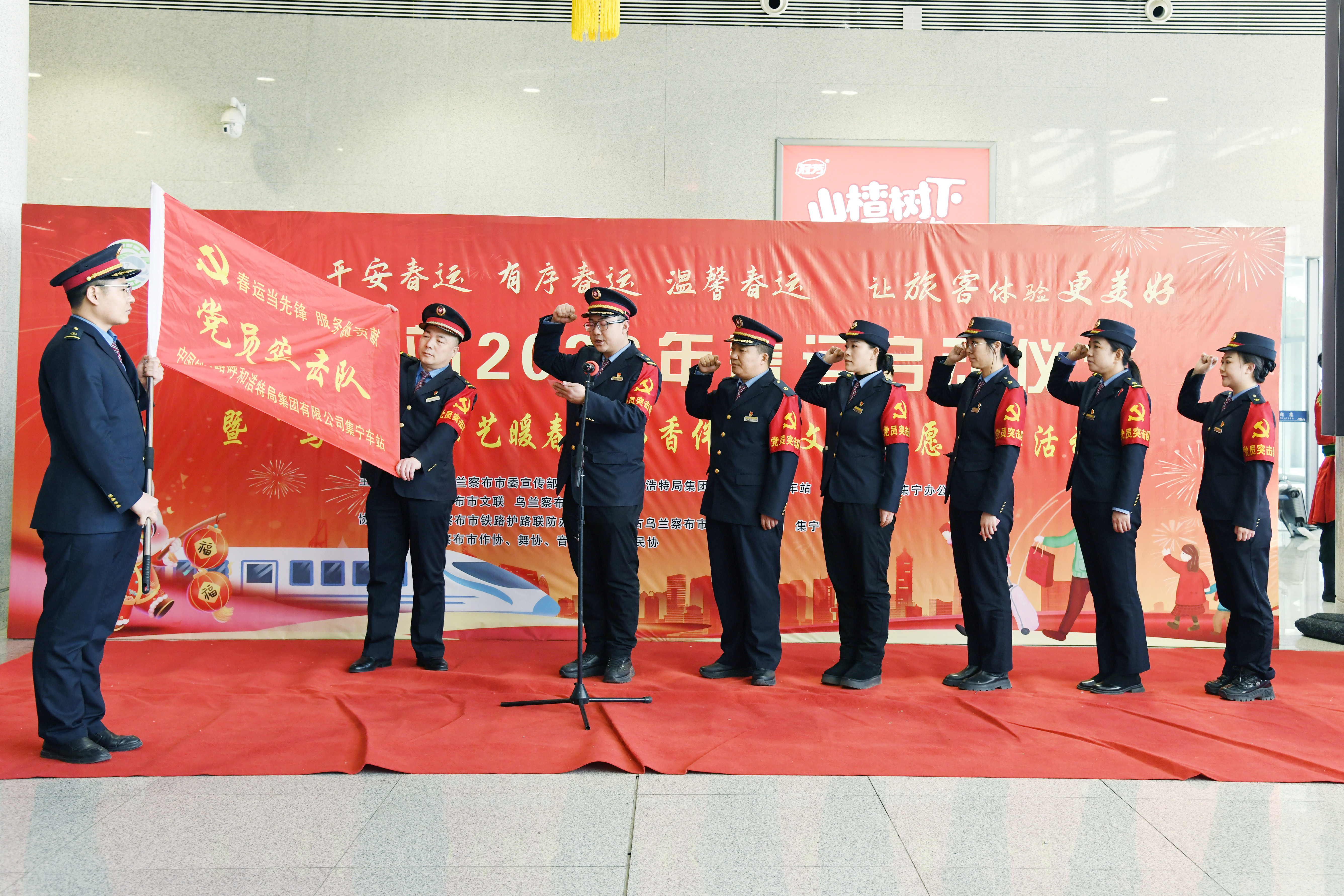 启动仪式上,站点负责人详细介绍了2026年春运重点工作安排,重点解读了客流预判、运力调配、服务保障升级等核心内容,明确了春运服务工作的目标与方向。现场还为党员突击队、志愿服务队授旗,两支队伍立即投入春运服务,积极开展客流引导、旅客帮扶等志愿服务工作。